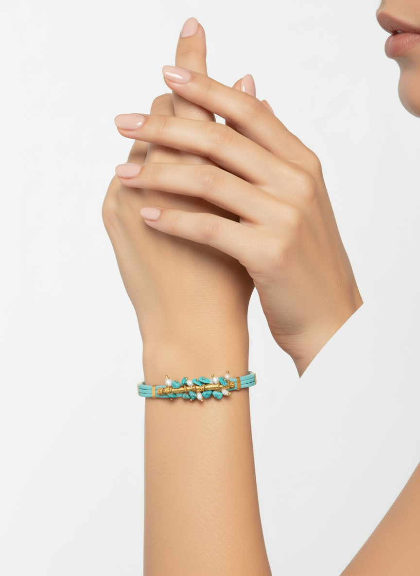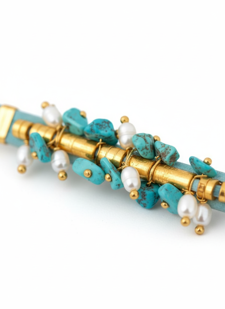 🔷 Turquoise & Pearl – Turquoise protects and empowers the wearer, while pearls foster purity and emotional balance.